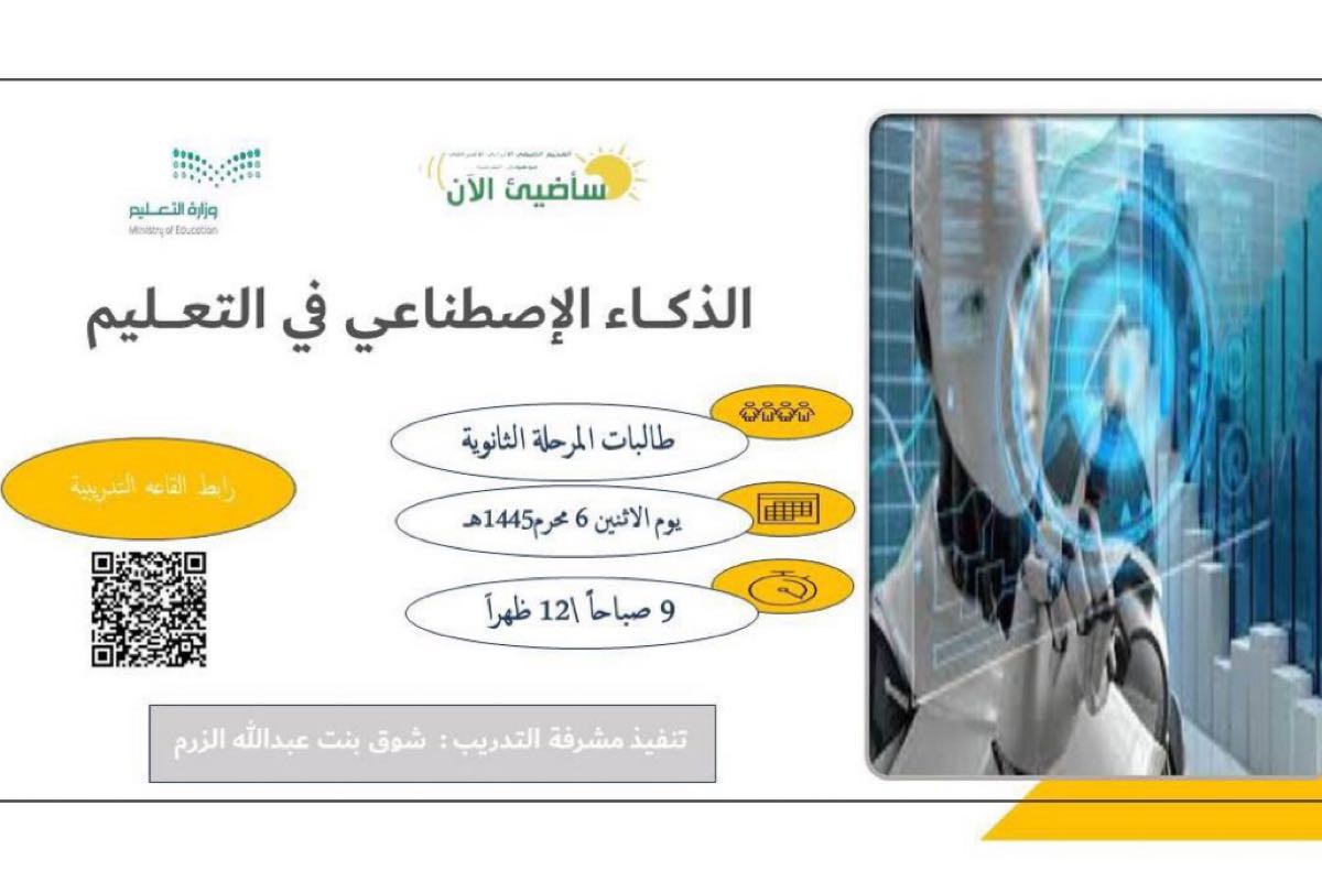 شاركت 77 طالبة من المرحلة الثانوية والمتوسطة، من فئة الموهوبات، في ورشة عمل «الذكاء الاصطناعي في التعليم»، التي نظمتها إدارة الموهوبات في الإدارة العامة للتعليم بالمنطقة الشرقية، ضمن البرنامج الصيفي «سأضيئ الآن 4»، وذلك افتراضيًا عبر قاعة «webex Meetings».