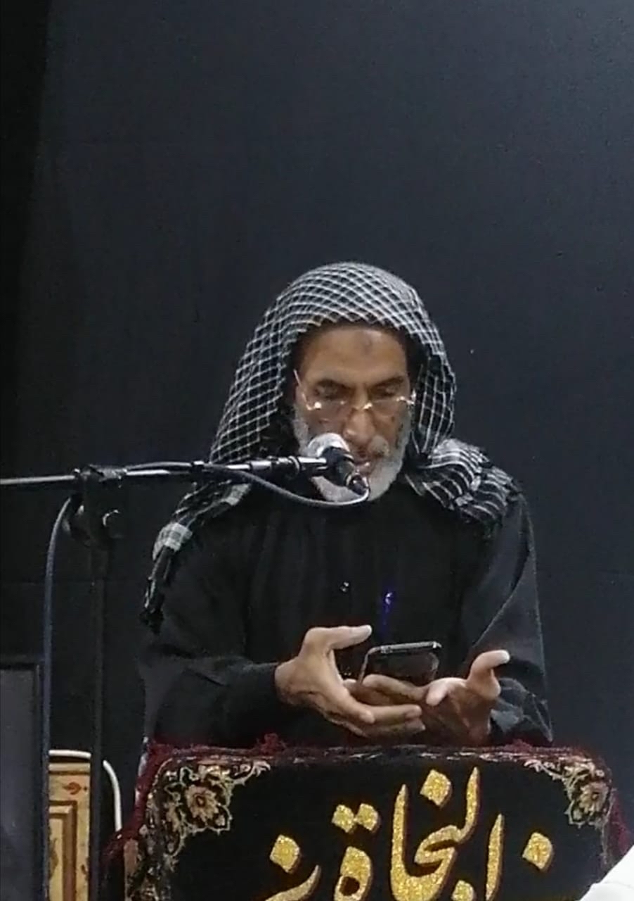واعتلى بعد ذلك أستاذ الشعراء ومؤسس منتدى الكوثر الشيخ عبدالكريم آل زرع مرتلاً تائيته والتي كان الجمهور الحضور يقرؤها مأتماً ومتابعاً له فيها، ومما قال: