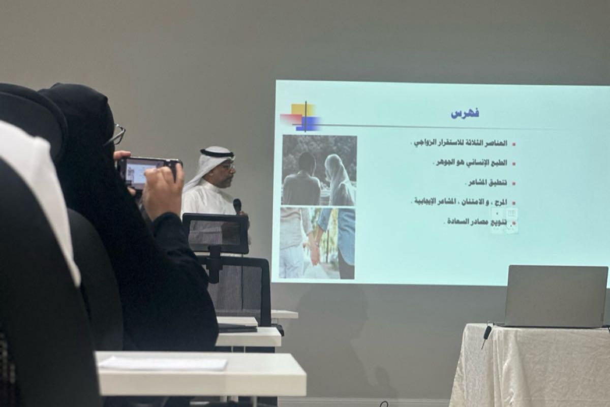 وتطرق إلى التكوين النفسي قبل الزواج بين السواء واللاسواء، وأن الزواج مرحلة نمائية، ويتطلب الإرادة في الوعي الذاتي بالنفس، والآخر، وإدارة الحالة العاطفية، وقياس مدى أثرها على الآخر.