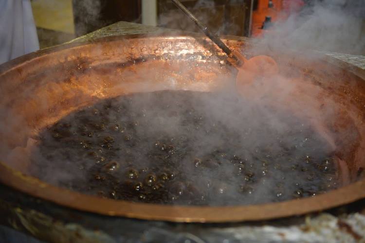 وعلّل الشاب العامري استخدام ”قدور النحاس“ بدلاً من الأنواع الأخرى لطهي الحلوى، بقدرته على تحمل الحرارة العالية وعدم تكسره أو انبعاجه بها.