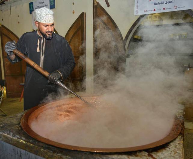 وشارك الشاب العُماني سيف العامري وعمه بإعداد الحلوى العمانية الشهيرة في الهواء الطلق، إذا تُعد واحدة من أشهر الأطباق الشعبية في السلطنة.