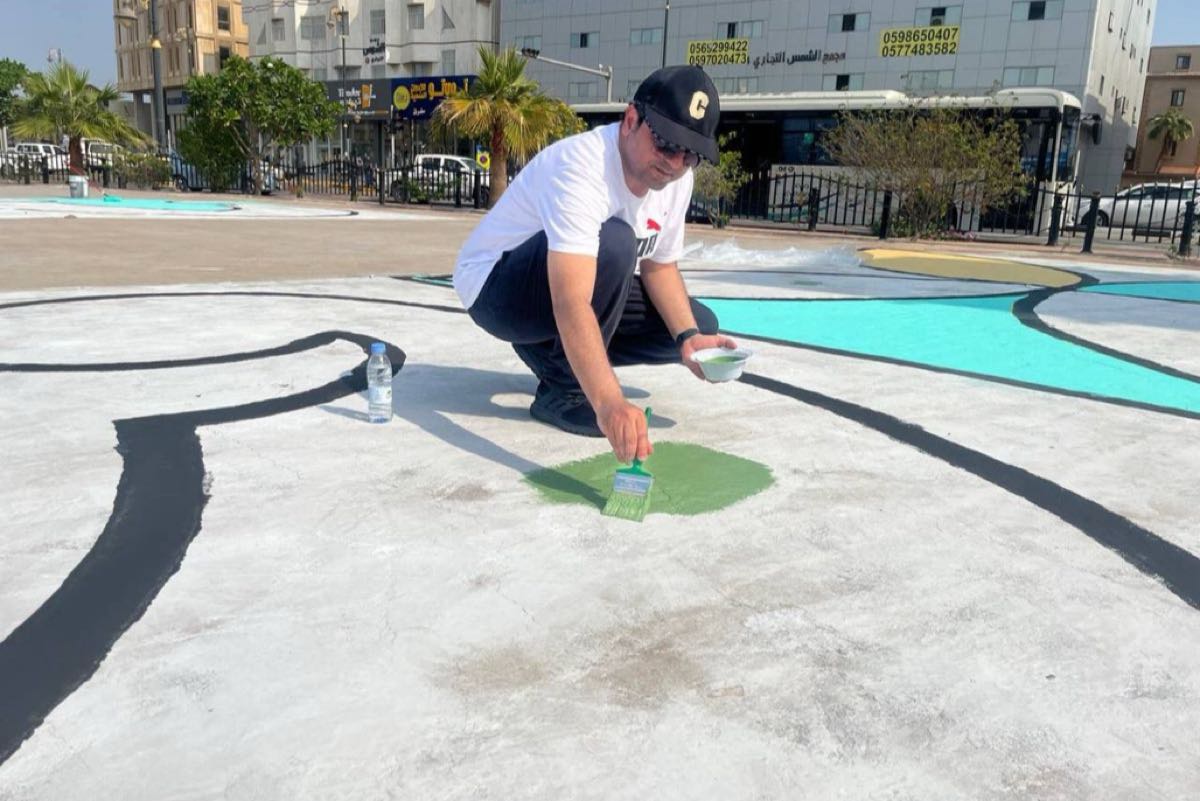 رسامو تعليم الشرقية يشكلون ارضيات الحدائق بزخرفة إبداعية