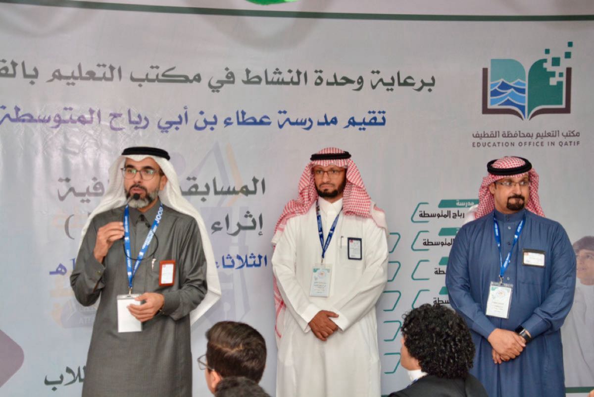 رعى مكتب التعليم بمحافظة القطيف، المسابقة الثقافية ”إثراء وعطاء“ في نسختها السابعة، التي أقامتها مدرسة عطاء بن أبي رباح المتوسطة بالقطيف، أمس، بمشاركة 10 مدارس متوسطة، وبحضور مساعد مدير التعليم للشؤون التعليمية عبدالسلام الشهري، ورئيس وحدة النشاط محمد العمري.