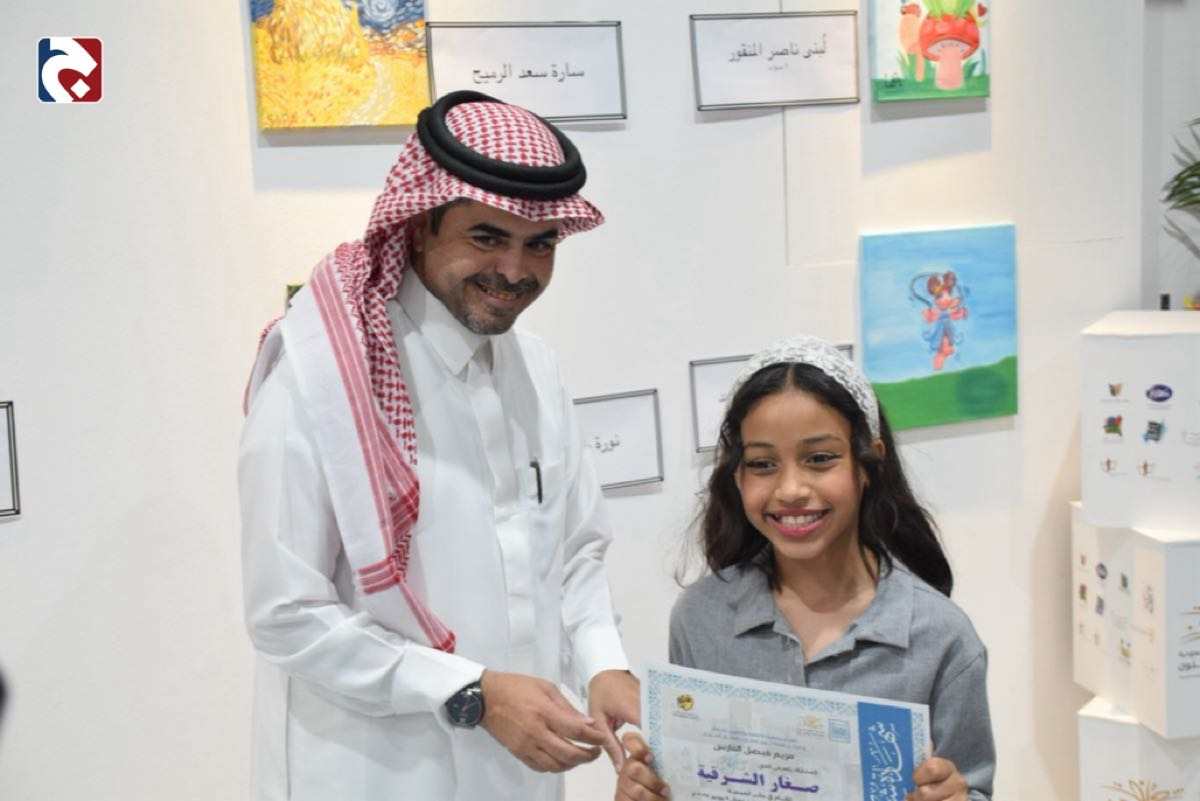 وعبّر ناصر المنقور والد الطفلة ”لبنى“ عن سعادته لمشاركة ابنته في المعرض، مؤكدًا أنه يسعى لتطوير موهبتها دائما.