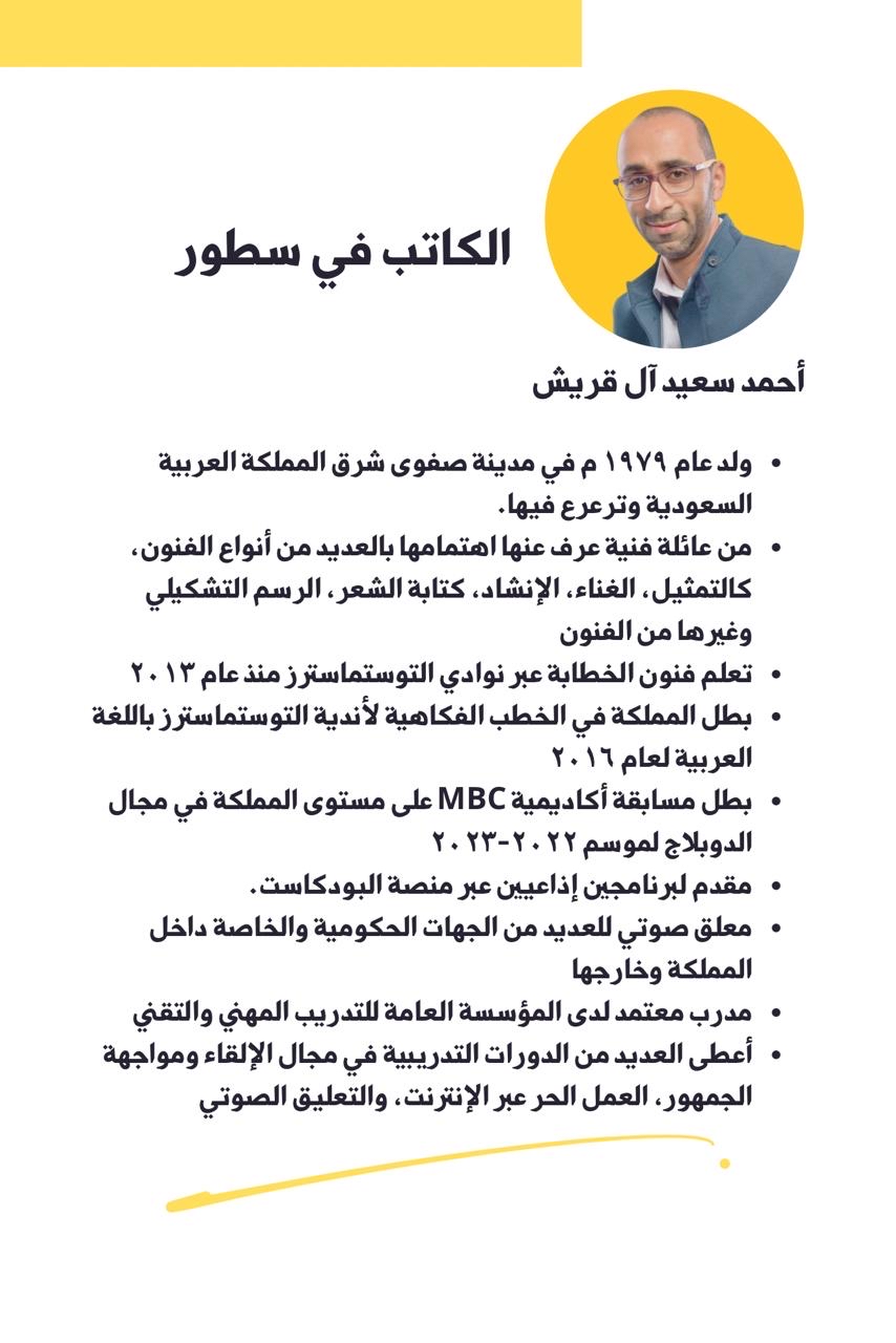 وأكد آل قريش أن هذين الكتابين يجسدان إيمانه بأنه ”لا مستحيل“ في قاموس الناجحين، وأن ”الحب والشغف يصنعان المعجزات“.