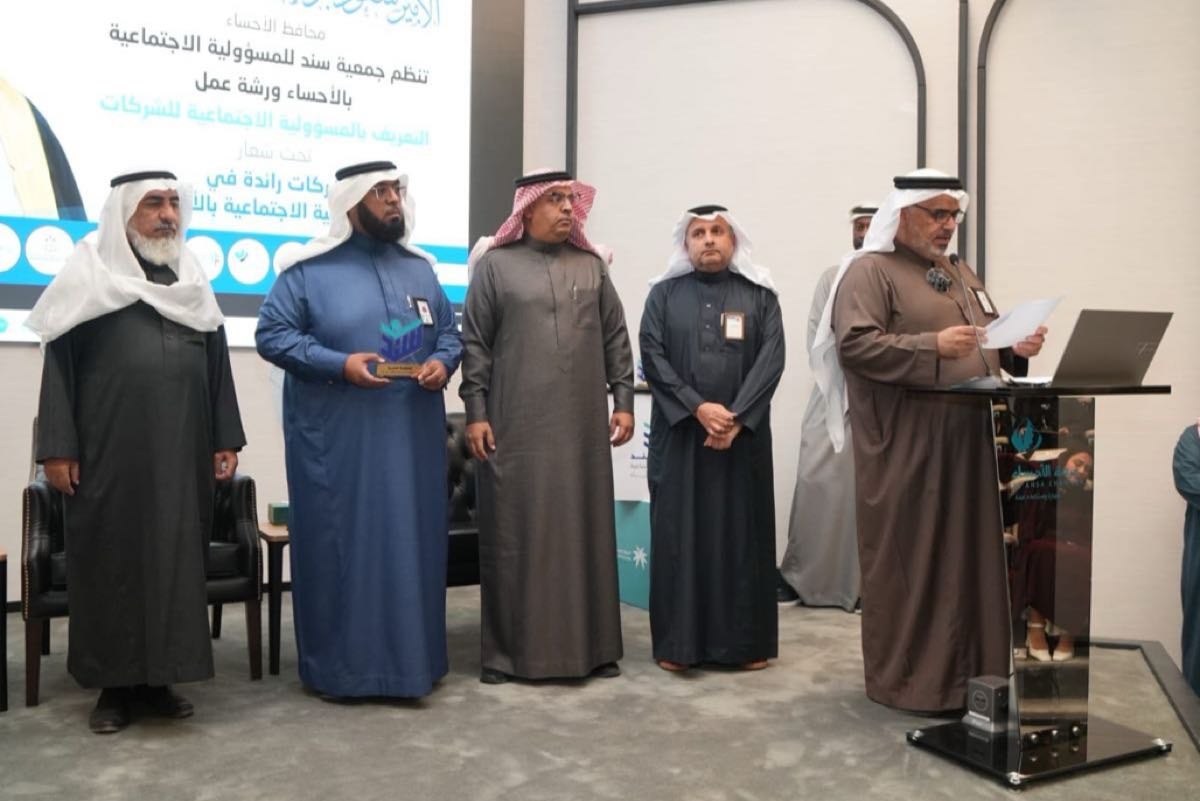 تحت رعاية الأمير سعود بن طلال بن بدر آل سعود محافظ الأحساء، نظمت جمعية ”سند“ للمسؤولية الاجتماعية ورشة عمل بعنوان ”التعريف بالمسؤولية الاجتماعية للشركات“، تحت شعار ”شركات رائدة في المسؤولية الاجتماعية بالأحساء“.