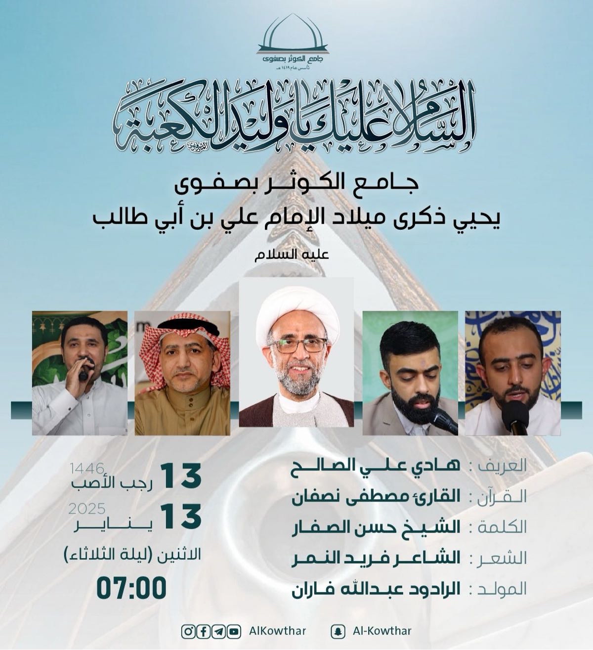 جاء ذلك ضمن الكلمة التي ألقاءها سماحته في الحفل الذي أقيم في جامع الكوثر بصفوى بمناسبة ذكر ميلاد أمير المؤمنين علي