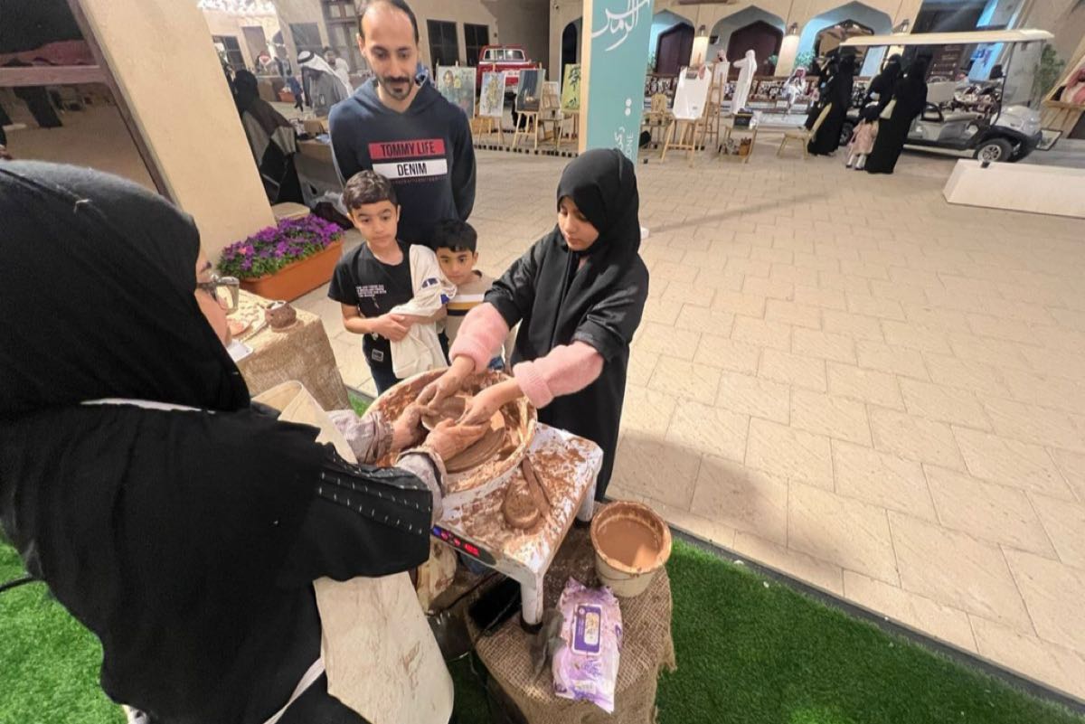 وفي ركن آخر من السوق، تُبدع الفنانة التشكيلية ازدهار علوي في صناعة الفخار، حيث بدأت رحلتها في الأحساء قبل ثلاث سنوات، وتعلمت أسرار هذه الحرفة على يد خبراء في ”فخارين المدينة“.