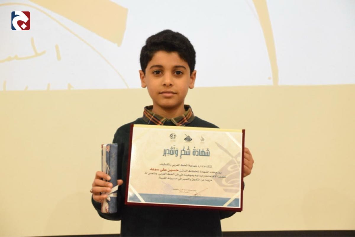 وفي لفتةٍ إنسانية، كرّمت الجماعة الخطاط الناشئ حسين ال سويد، الطالب في المرحلة الابتدائية، لحضوره الدائم للجلسات الأسبوعية وورش العمل، وتشجيعاً له على الاستمرار في تطوير موهبته.