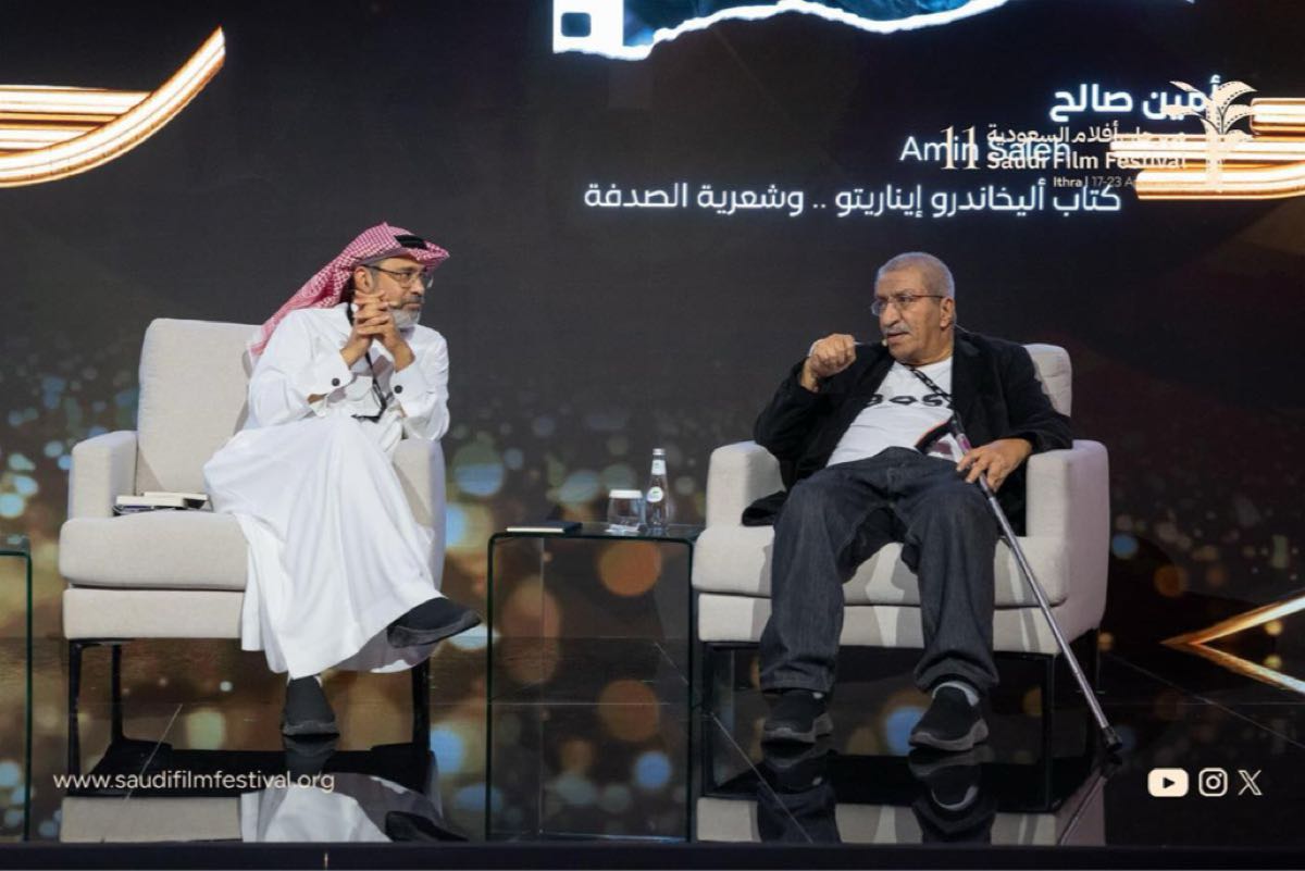 واختتم البرنامج الثقافي المسائي بجلسة توقيع لإصدارين جديدين ضمن مبادرة الموسوعة السعودية للسينما، حيث وقع أمين صالح كتابه ”أليخاندرو إيناريتو وشعرية الصدفة“، ومحمد الفهادي كتابه ”إيقاع السيناريو: فن التحكم في الزمن“، وأدار الحوار الإعلامي عبدالوهاب العريض.