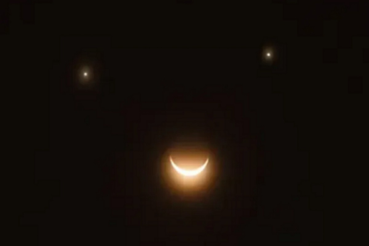 وأوضح أن الصورة المتداولة والتي تظهر هلالاً أسفل نقطتين لامعتين بشكل يشبه الابتسامة، تعود في الحقيقة لحدث فلكي مختلف تماماً وقع في 1 ديسمبر 2008 وجمع بين القمر وكوكبي الزهرة والمشتري ”وليس زحل“.