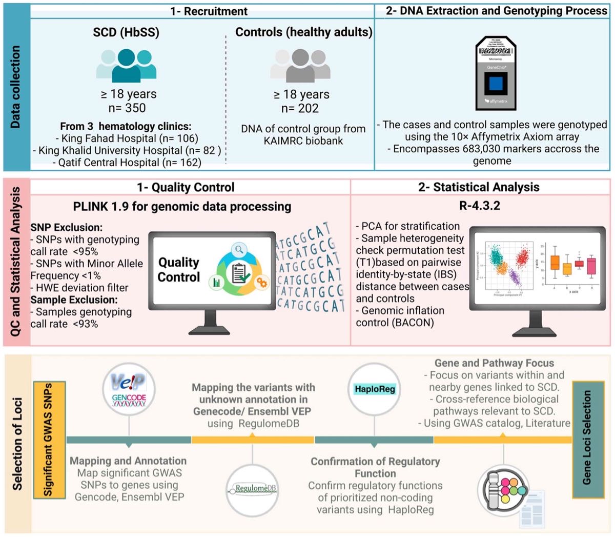 تمثل هذه الدراسة أول دراسة ارتباط على نطاق واسع (GWAS) من نوعها في المملكة العربية السعودية، حيث شملت أكثر من 350 مشاركًا من مرضى فقر الدم المنجلي ومقارنتهم بـ 202 من الأصحاء، وحللت الدراسة أكثر من 700,000 طفرة جينية، باستخدام منهجية دراسات ارتباط الجينوم على نطاق واسع (GWAS) المعترف بها عالميًا للكشف عن الاختلافات الجينية التي يُتوقع أن تؤثر على مضاعفات المرض.