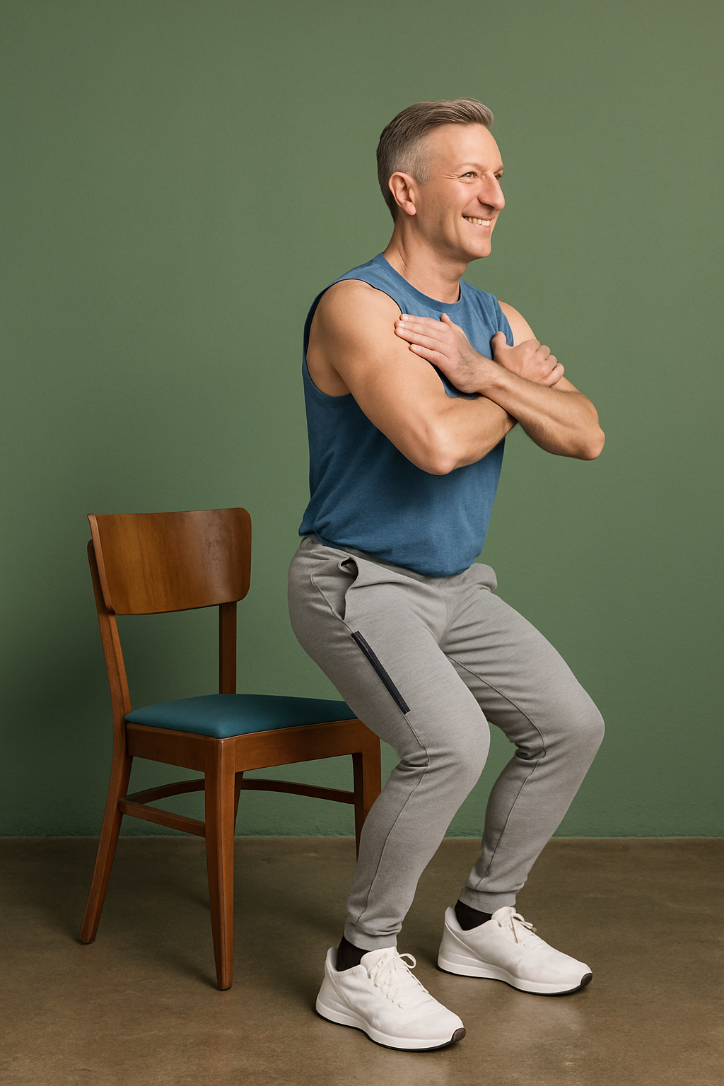• القيام والجلوس المتكرر من الكرسي «بدون استخدام اليدين للمساعدة على القيام أو الجلوس».