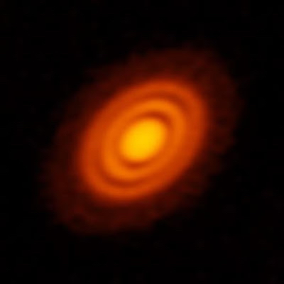 تستطيع التلسكوبات رؤية ولادة أنظمة شمسية جديدة [8] ، تُعرف بالنجوم الأولية [9] . هذه صورة لقرص كوكبي أولي حول نجم بعيد في مجرة درب التبانة.