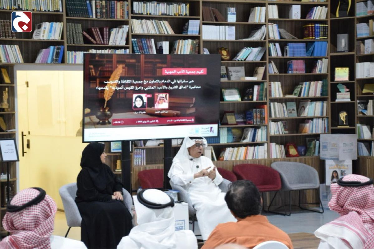 نظّمت جمعية الأدب، بالتعاون مع جمعية الثقافة والفنون، مساء الاثنين، محاضرة بعنوان: ”تَعالُق التاريخ والأدب: المتنبي وامرؤ القيس أنموذجًا“، قدّمها الباحث الدكتور عبد العزيز الشبل، وأدارتها الكاتبة طاهرة آل سيف، وذلك فيفرع الجمعية في مدينة الدمام، ضمن برامج لجنة سفراء الجمعية في المنطقة الشرقية.