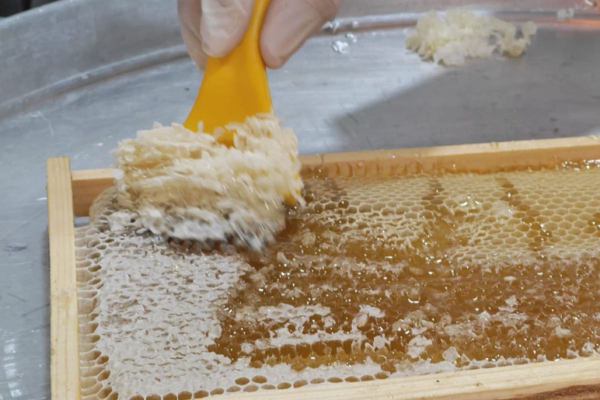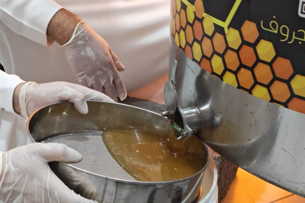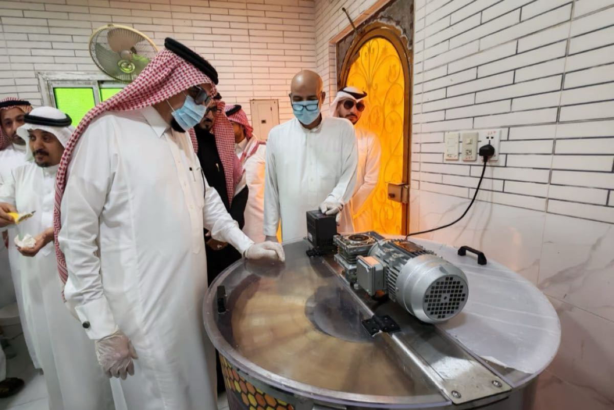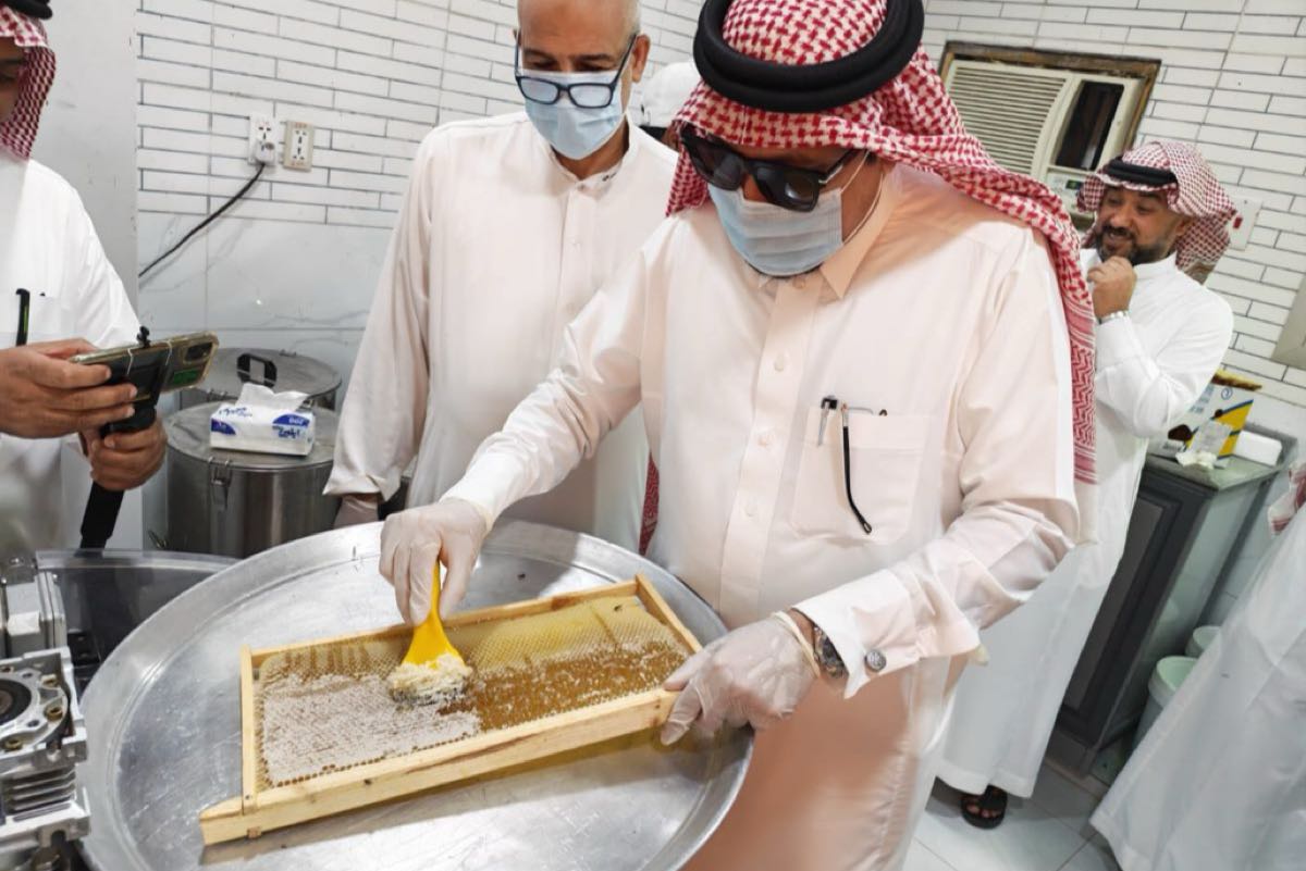 وتابع المهندس الأصمخ ومرافقوه عن كثب المراحل الدقيقة لعملية الفرز، بدءًا من كشط الأغطية الشمعية عن عيون العسل، مرورًا بوضع البراويز في آلات الفرز الآلية التي تعمل بالطرد المركزي، وصولًا إلى تجميع العسل وقياس نسبة الرطوبة فيه.