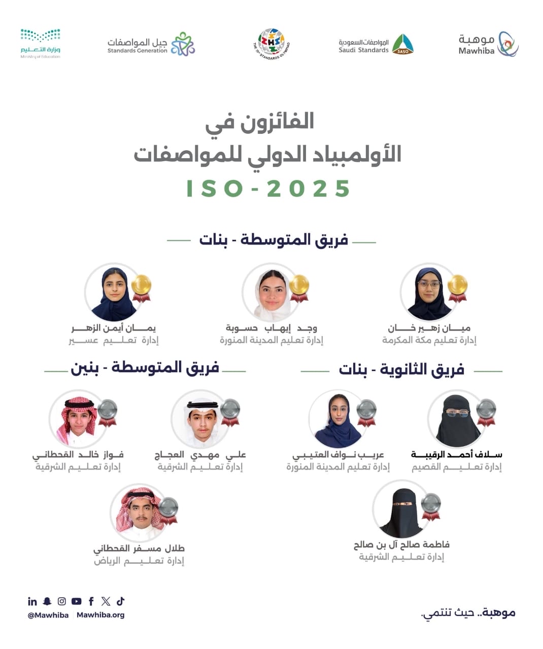 وقد تم إعدادهم عبر برامج تدريبية وتأهيلية مكثفة، في إطار شراكة إستراتيجية بين مؤسسة الملك عبدالعزيز ورجاله للموهبة والإبداع ”موهبة“، ووزارة التعليم، والهيئة السعودية للمواصفات والمقاييس والجودة.