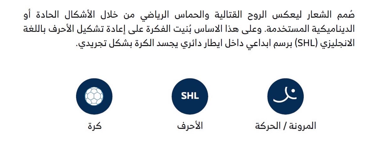 وتجسد الهوية الجديدة فلسفة عصرية ترتكز على القوة والحماس والتنافسية التي تتميز بها رياضة كرة اليد، حيث تم تصميم الشعار ليعبر عن ديناميكية اللعبة وسرعتها، ويرمز في الوقت ذاته إلى التطور المستمر الذي يشهده الدوري السعودي.
