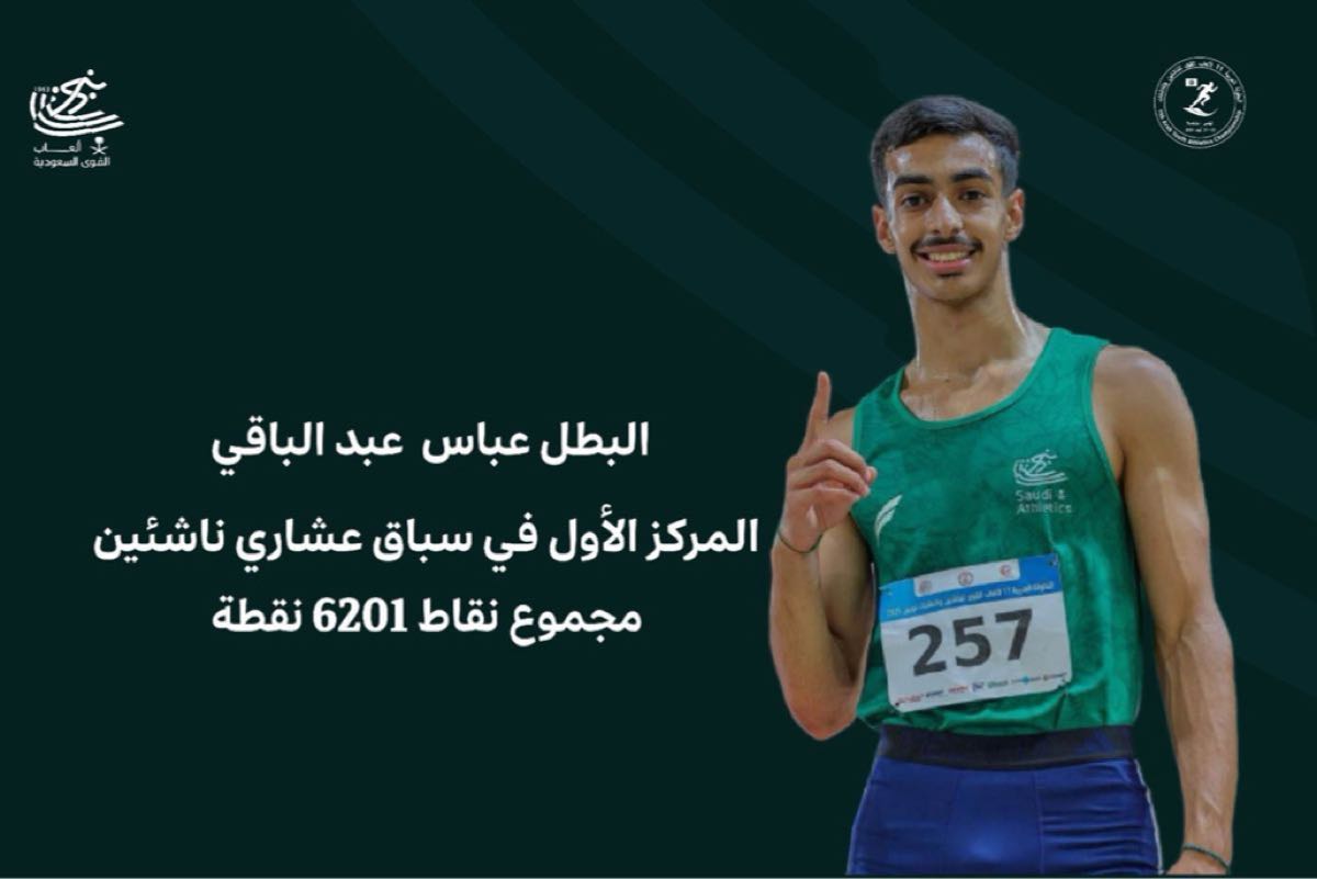 حقق لاعب المنتخب السعودي لألعاب القوى للناشئين، عباس منير آل عبد الباقي، إنجازاً رياضياً كبيراً بحصوله على المركز الأول والميدالية الذهبية في مسابقة العشاري.