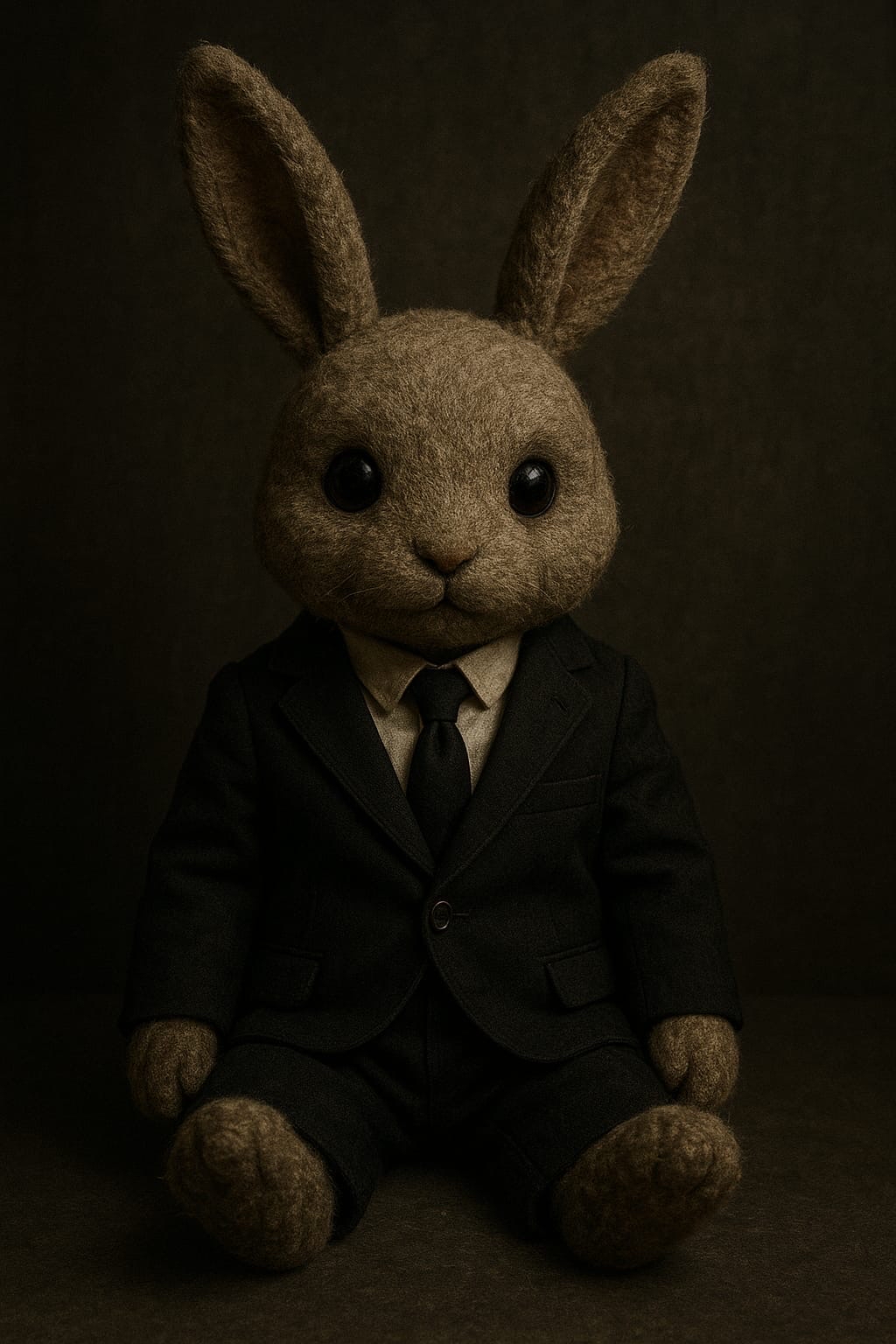 يُقال أن صور الهولوقرام تعرقل النمو السليم للأطفال، وأنهم يجب أن يلعبوا بدمى لها وجود مادي ملموس، وبالتالي فقد أعطيت هاشم لعبته المفضلة وهي عبارة عن أرنب محشوّ يلبس بدلة توكسيدو سوداء، وهو زي قديم انقرض ولم يعد أحد يلبسه سوى بعض ألعاب الأطفال.. وضعتها على بعد بضع خطوات أمامه لكي يحبو باتجاهها.. وقد وصل إليها بسرعة أدهشتني.