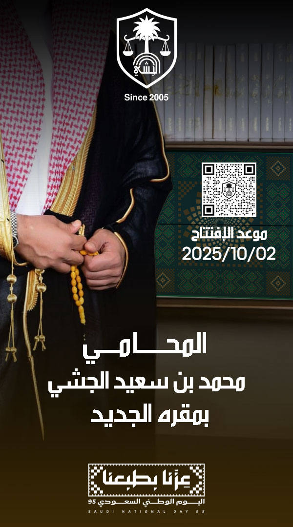 الاستشارات مجانا بمناسبة افتتاح مكتب ”المحامي الجشي“