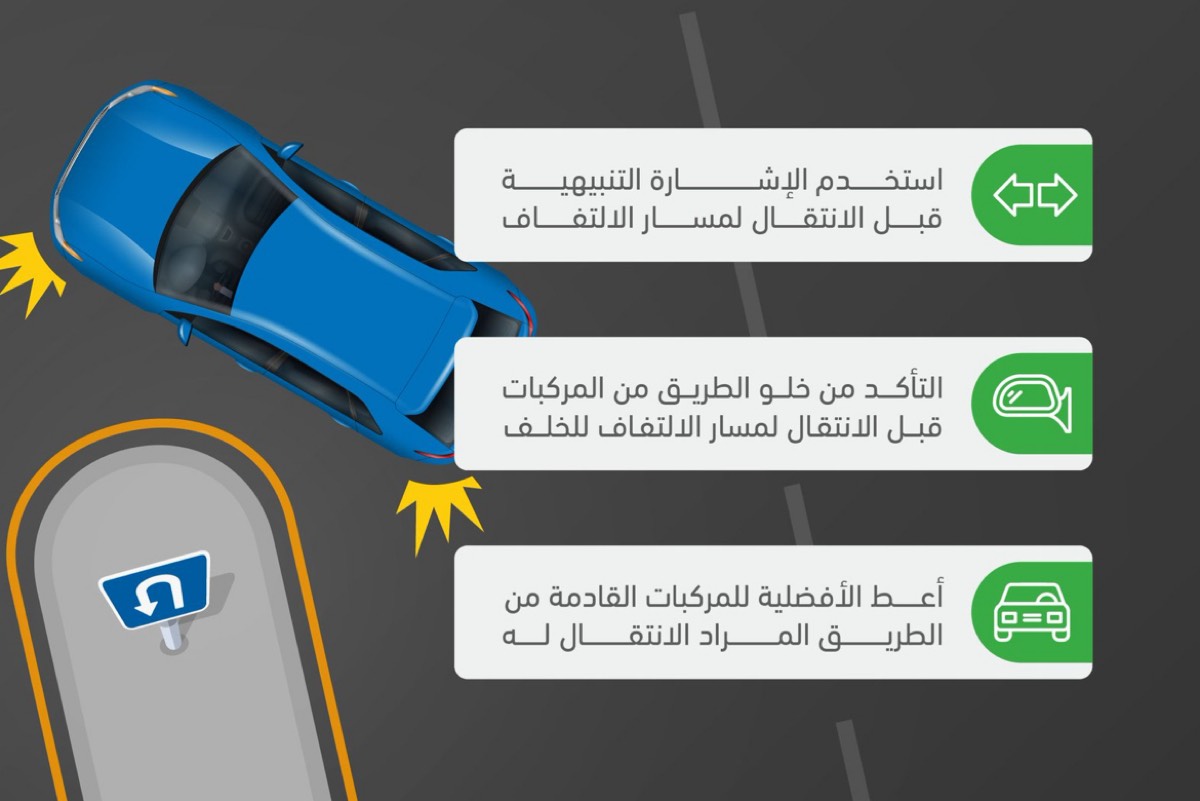 وأكد ”المرور السعودي“ أن أهم اشتراطات السلامة أثناء الالتفاف يتمثل في منح الأفضلية للمركبات القادمة من الطريق المُراد الانتقال إليه.