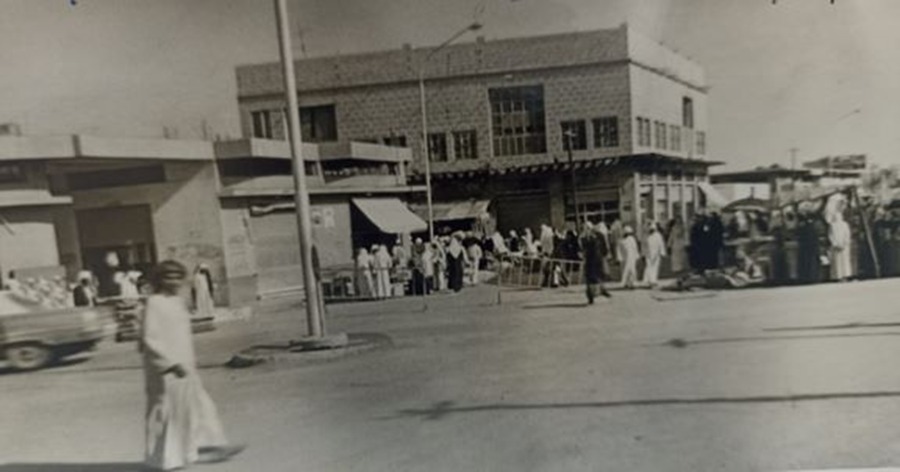 حي المدارس بشارع الملك عبد العزيز بجانب مكتبة الساحل بالقطيف «مصدر الصورة: من أرشيف المرحوم إبراهيم منصور البحارنه»