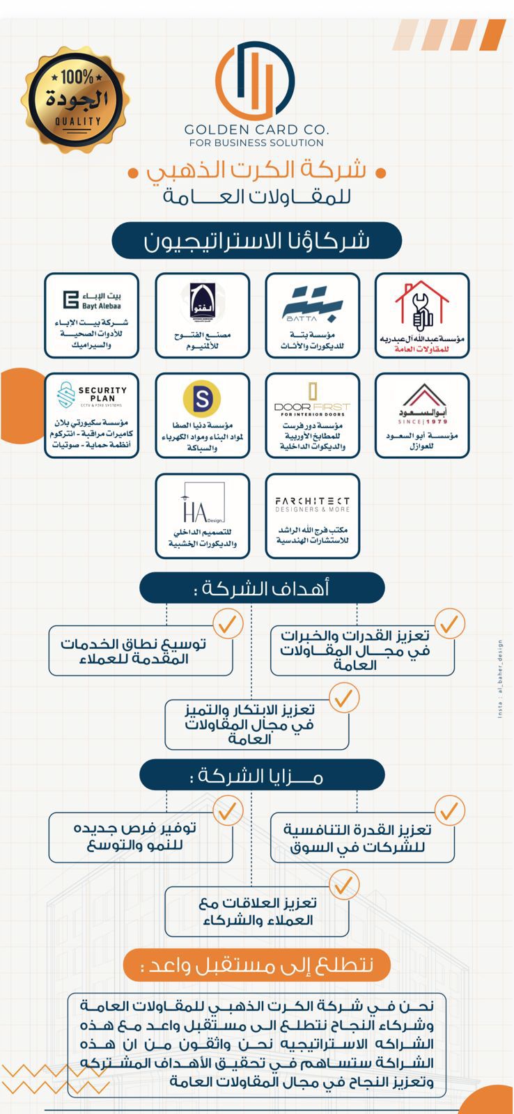 خصم 20% لدى ”شركة الكرت الذهبي للمقاولات“