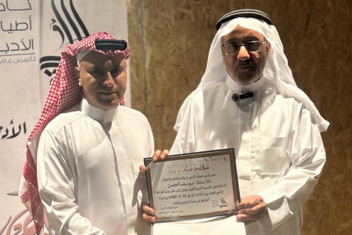 وفي ختام الأمسية التي شهدت حضوراً لافتاً من المهتمين، كرّم الروائي ورئيس النادي حسن الحجي، ضيف اللقاء بشهادة شكر وتقدير، مثمناً الطرح الواقعي والحلول العملية التي قدمها لإنعاش المشهد الثقافي.