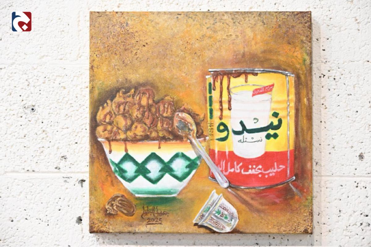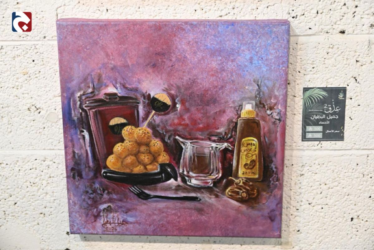 وثّق الفنان التشكيلي جميل البطيان التحولات الاجتماعية والثقافية المرتبطة بمنتج ”الدبس“ الأحسائي، عبر مشاركته بلوحتين فنيتين في النسخة الثانية من معرض ”عذق“ المقام بالجمعية العربية السعودية للثقافة والفنون بالأحساء، مقدماً سرداً بصرياً يربط الماضي بالحاضر.