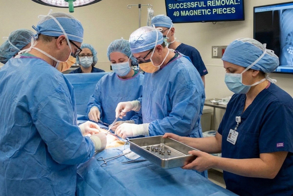 وتمكن الأطباء خلال عملية دقيقة استغرقت ساعة واحدة فقط، من استخراج كافة القطع المغناطيسية بنجاح تام، دون الحاجة إلى إجراء أي فتح جراحي في بطن الطفل، مما يعكس كفاءة الكوادر الطبية وتطور التجهيزات في المستشفى.