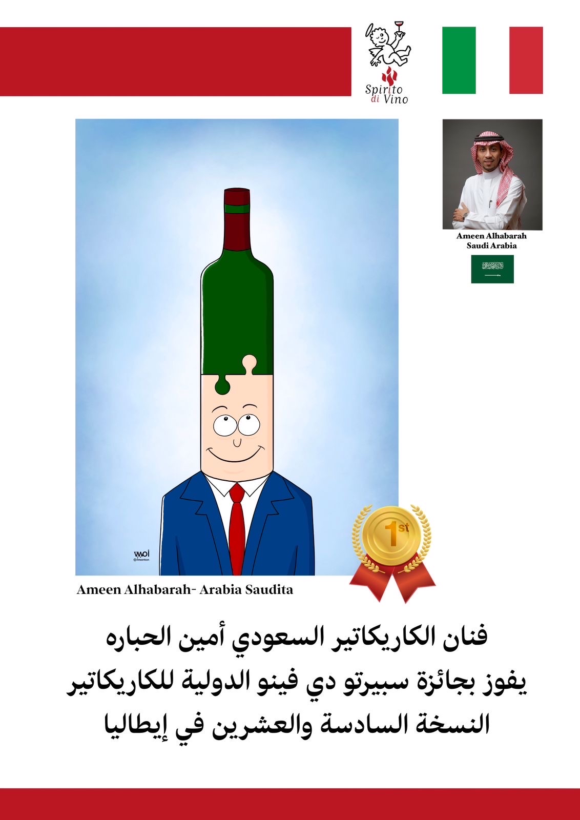 انتزع رسام الكاريكاتير السعودي أمين الحباره الجائزة الأولى في الدورة السادسة والعشرين لمسابقة ”سبيريتو دي فينو“ الدولية في إيطاليا، متفوقاً بلوحته الفنية العميقة ”الإدمان الصامت“ على منافسين محترفين من مختلف قارات العالم، ومسجلاً بذلك إنجازاً وطنياً جديداً يرسخ حضور الفن السعودي المعاصر في أعرق المحافل الثقافية الأوروبية.