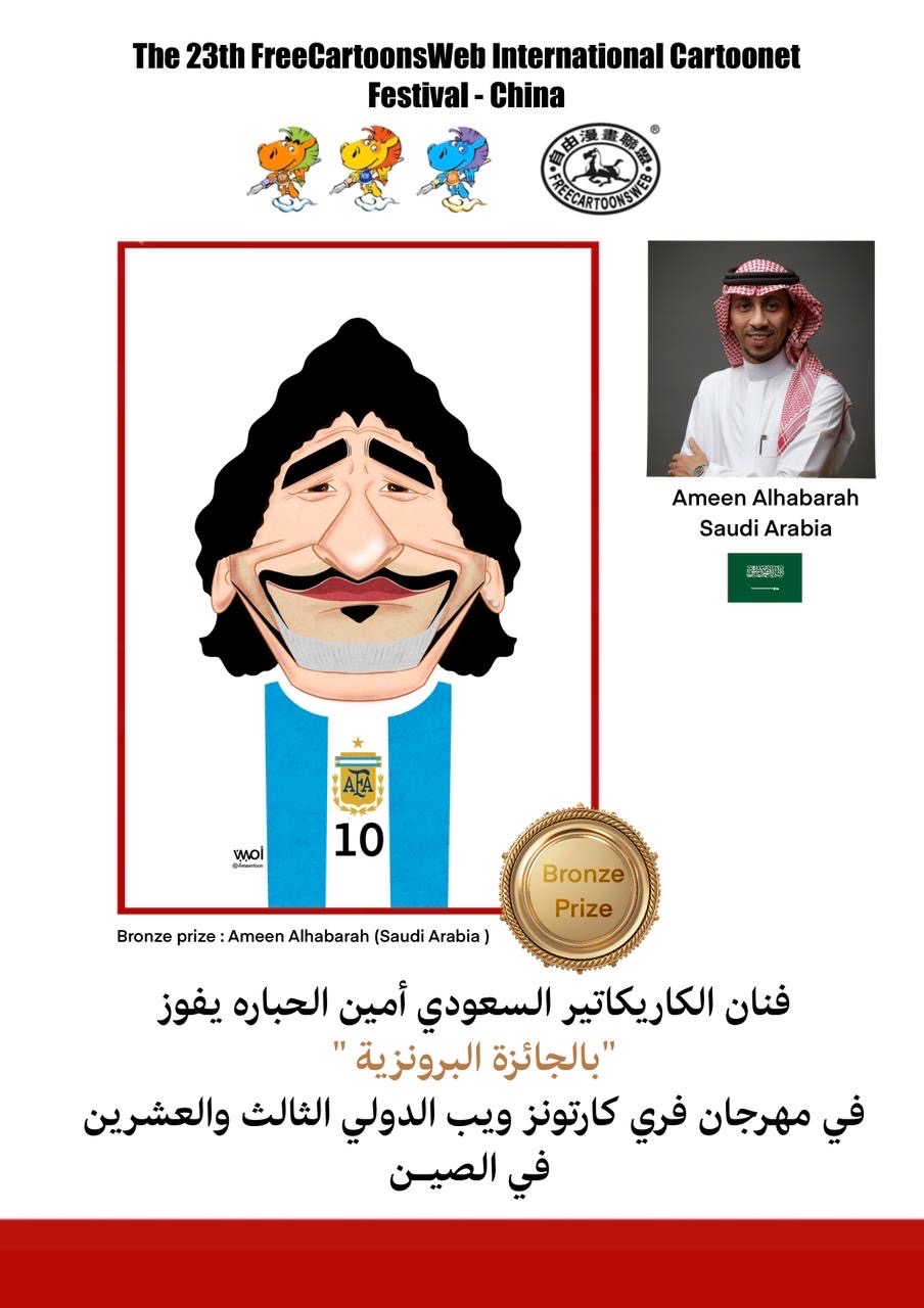 اقتنص فنان الكاريكاتير السعودي أمين الحباره الجائزة البرونزية في النسخة الثالثة والعشرين لمهرجان ”فري كارتونز ويب“ الدولي في الصين، مواصلاً سلسلة إنجازاته العالمية المتتابعة ومسجلاً حضوراً لافتاً للفن السعودي وسط منافسة شرسة جمعت نخبة من رسامي الكاريكاتير حول العالم.