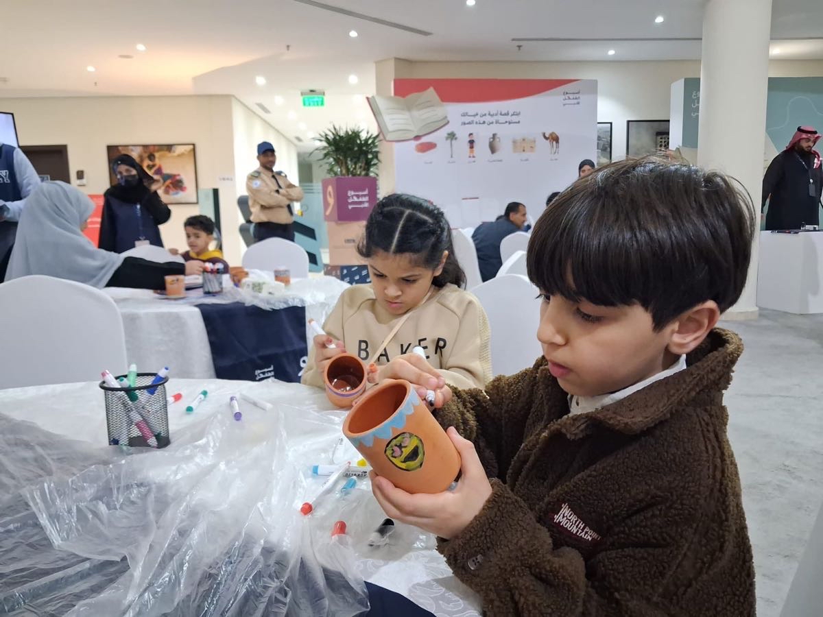 وشهد اليوم الأول توافد عدد من الأطفال الذين انخرطوا فور وصولهم في ورش عمل متخصصة دمجت بين فنون الكتابة والرسم، مترجمين شعار الفعالية ”نحن نصنعها معه“ إلى واقع حي.