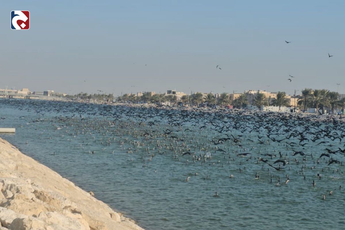 صور.. أسراب الطيور المهاجرة تحول كورنيش القطيف إلى لوحة طبيعية آسرة