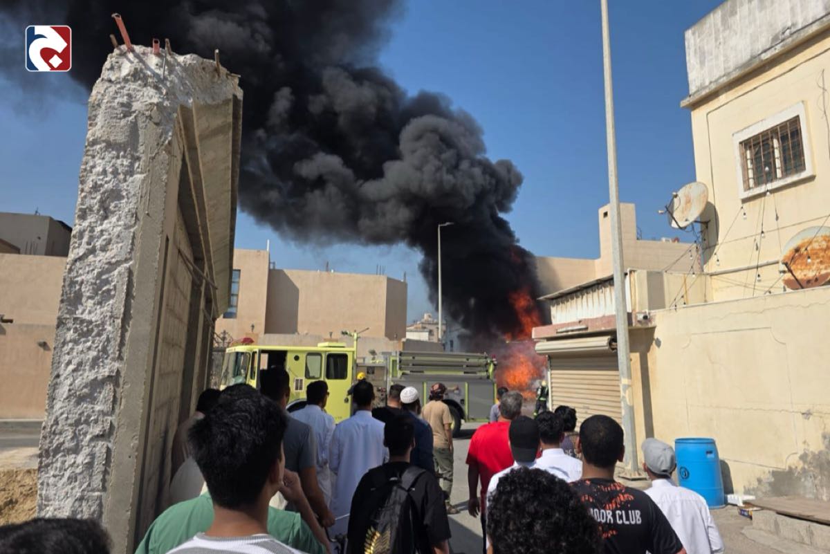 الدفاع المدني يسيطر على حريق مركبة متنقلة بجزيرة تاروت