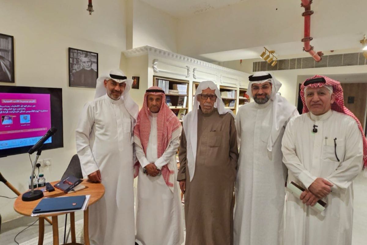 أقام ”سفراء أدب القطيف“ أمسية ثقافية بمكتبة ”رونق الحياة“ احتفاءً بيوم التأسيس، استعرض خلالها الناقد محمد الحميدي تطور فكرة الوطن بالمخيال الشعري لترسيخ الهوية الوطنية والانتماء، وسط حضور أدبي لافت.