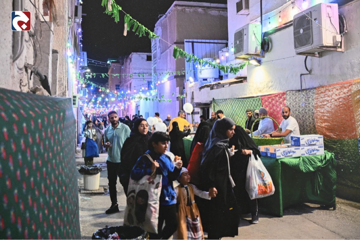 وخطفت عدسة المصور نسيم العبد الجبار أنظار زوار المعرض بتوثيقها لحظة عاطفية نادرة، تجسد عودة الأهالي للاحتفال في حيهم القديم ”الشويكة“ رغم انتقالهم لمناطق حديثة.