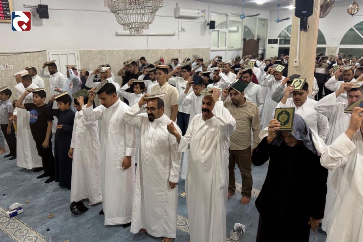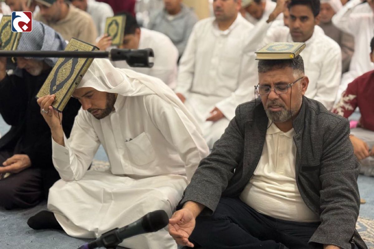 وصدحت حناجر الحاضرين بقراءة دعاء رفع المصاحف والتوسل بالقرآن الكريم، وسط أجواء إيمانية غمرتها أصوات الاستغفار والابتهال إلى الله عز وجل.