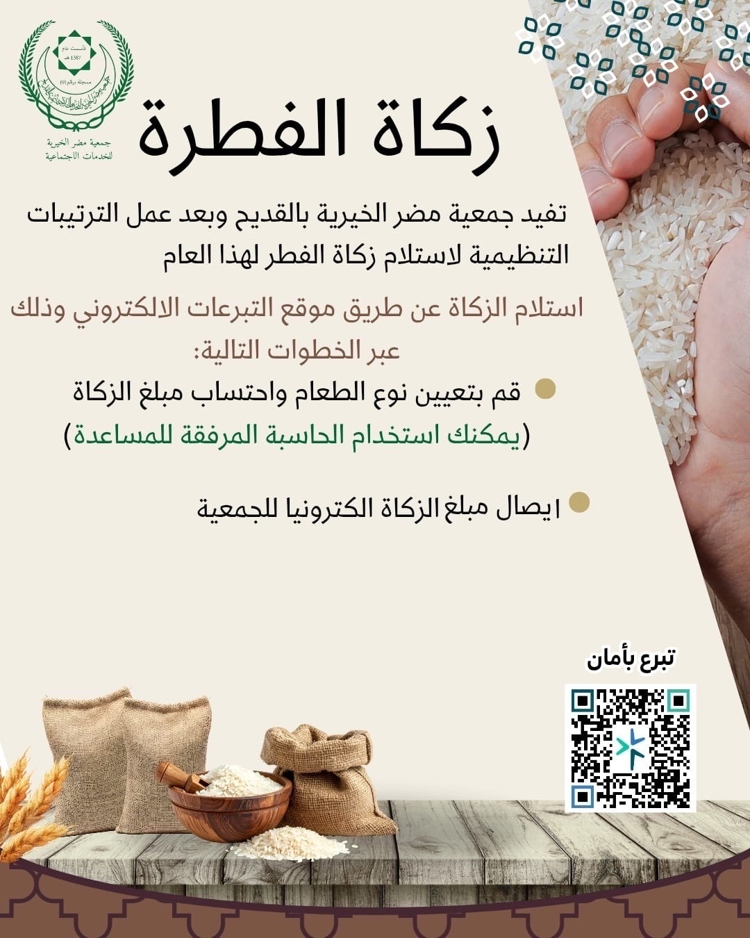 أطلقت جمعية مضر الخيرية بالقديح منصتها الرقمية لاستقبال زكاة الفطرة لعام 1447 هـ، لتمكين الأهالي من إخراجها إلكترونياً وميدانياً بكل يسر وأمان، لضمان وصولها للمستحقين قبل إشراقة شمس العيد.