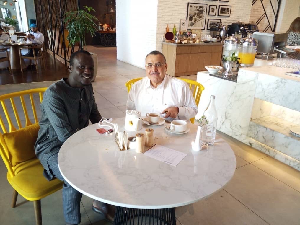 في صباح اليوم التالي، صادفته مرة أخرى، فنهضت إلى طاولته، وكان سعيدًا بترحيبي وإجلاسي إلى جانبه، ثم منحني من وقته بضعَ دقائق، أخبرته بإفادتي من برنامجه، فسر كثيرًا، وسألني عن السنغال وعن الحياة الثقافية فيها، وأخبرني أنه كان يعرف الرئيس السنغالي الأول «ليوبولد سيدار سنغور» والتقى به.