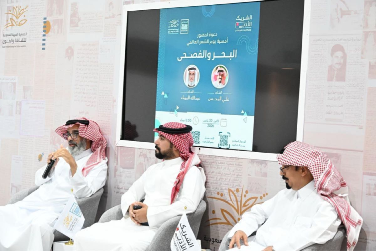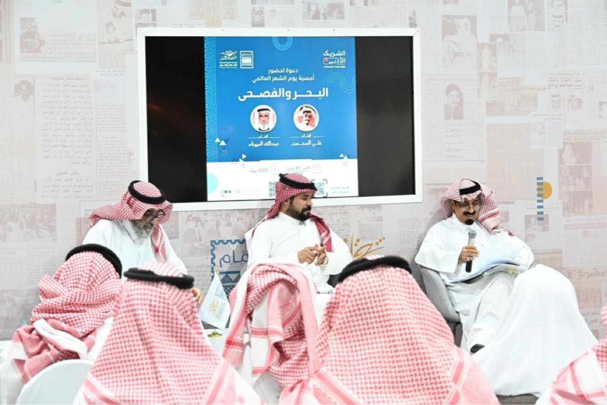احتفت جمعية الثقافة والفنون بالدمام، بيوم الشعر العالمي عبر أمسية ”البحر والفصحى“، بمشاركة الشاعرين علي المحسن وعبدالله المهناء، حيث امتزج التراث البحري بالقصائد الوطنية والوجدانية وسط حضور ثقافي لافت.