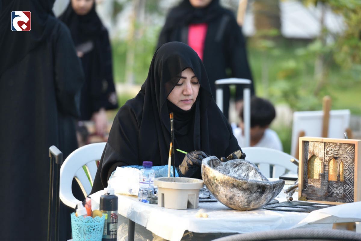 وفي سياق تنوع المدارس الفنية، استعرضت مدرسة الفنون الفنانة التشكيلية زهراء العلوي، تجربتها الممتدة لـ 26 عاماً في ابتكار أسلوب يحاكي فن ”الإيتان“ والمعادن.