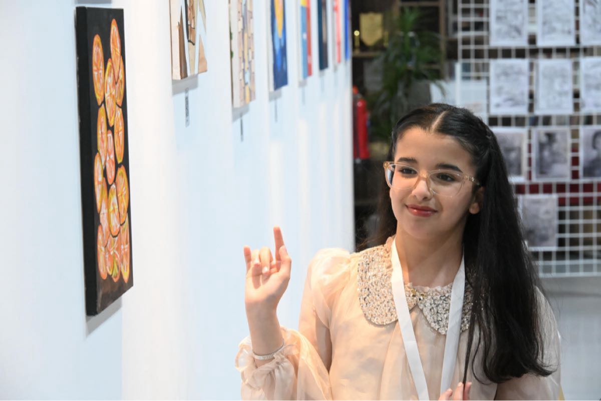 وخصصت الطالبة، التي تحمل لقب ”سفيرة الثقافة والفنون“ في مدرستها، مساحة بارزة في المعرض لاستعراض الجوائز والشهادات التي حصدتها خلال مسيرتها القصيرة والمميزة.