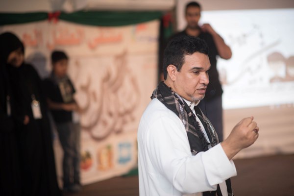 وشارك حسن آل زايد في نشاط تعليم فن الرسم الحسيني، بتطبيق الرسم مع الأطفال في كيفية رسم الوجه واتجاه العين على حدث وفلم تم عرضه لهم.