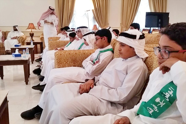 طلاب مدارس العوامية يهنئون محافظ القطيف بمناسبة اليوم الوطني