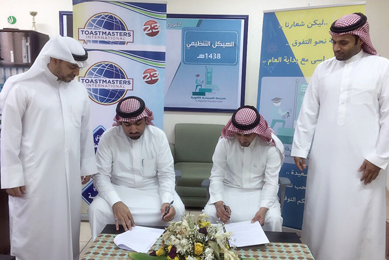 بادرت إدارة مدرسة المجيدية الثانوية بالقطيف متمثلة بقائدها مؤيد الشبركة بتأسيس نادي للتوستماسترز باللغة العربية على مستوى المنطقة، وذلك بعد توقيعها اتفاقية تدريب مع اندية التوستماسترز بالمملكة الذي مثلها عباس العبد رب الرضا يوم الأربعاء.