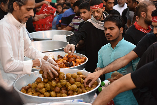 وتوزعت المضائف على امتداد خط المسيرة مقدمة مختلف الأطعمة والمشروبات.