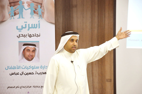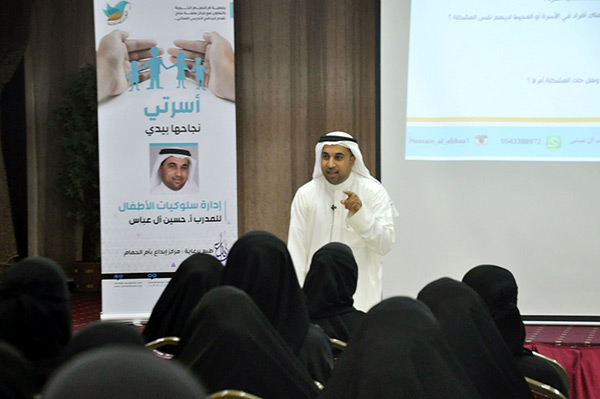 أسرتي نجاحها بيدي - جمعية أم الحماموأكد المدرب آل عباس على أهمية معالجة المشاكل السلوكية لذى الاطفال في المحاضرة التي قدمها بعنوان”إدارة سلوكيات الأطفال“.