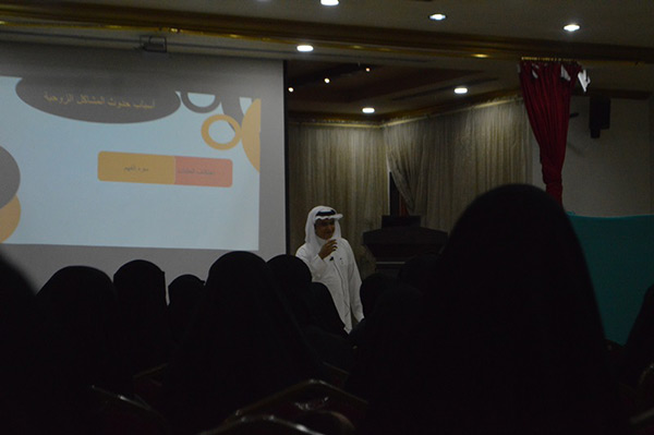 ومن جانب أخر قدم المدرب سعيد آل شبيب محاضره بعنوان ”إدارة المشكلات الزواجية“ هدف من خلالها الى زيادة الوعي الذاتي لكلا الزوجين حول ادارة المشاكل الزوجية من خلال اكسابهم بعض المهارات اللازمه لتحقيق الاهدف.